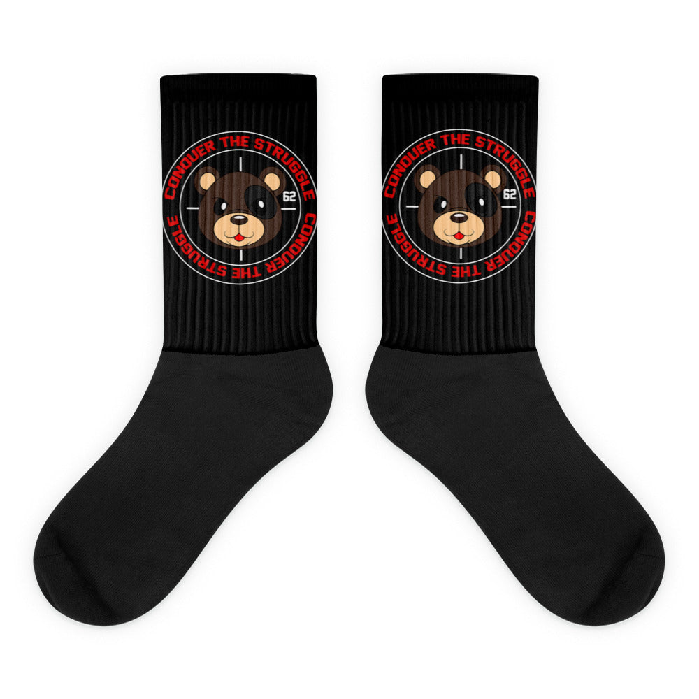 These socks are extra comfortable thanks to their cushioned bottom. The foot is black with artwork printed along the leg with crisp, bold colors that won't fade.