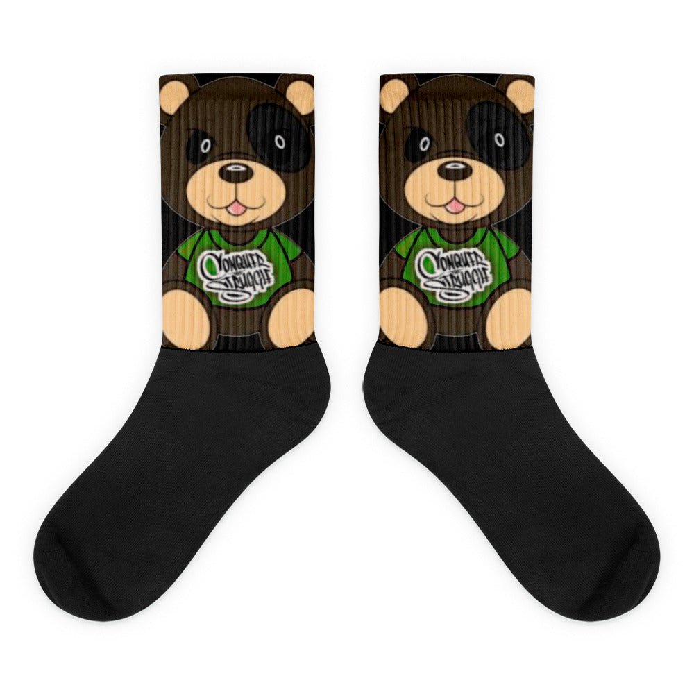 These socks are extra comfortable thanks to their cushioned bottom. The foot is black with artwork printed along the leg with crisp, bold colors that won't fade.