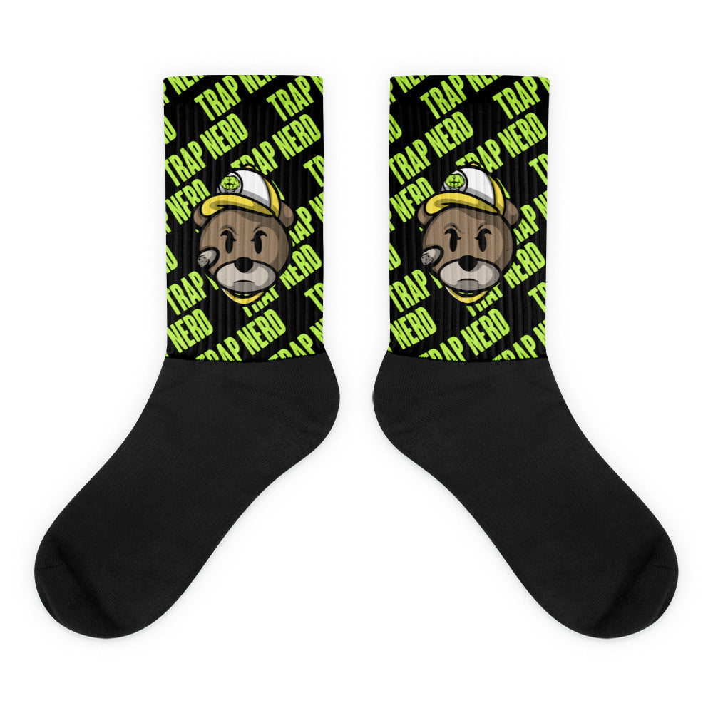 These socks are extra comfortable thanks to their cushioned bottom. The foot is black with artwork printed along the leg with crisp, bold colors that won't fade.